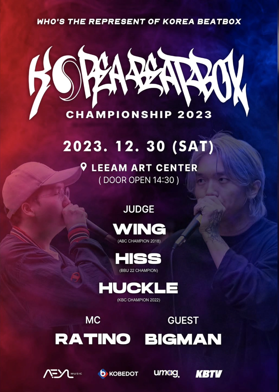 The Korea Beatbox Championship 2023 was the 13th edition of the national Beatbox Championship held at LEEAM ART CENTER in Seoul, South Korea on December 30th, 2023.